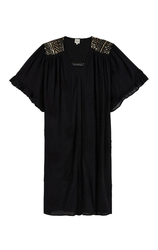 ABITO NERO LUNGO CON DETTAGLIO MANICA