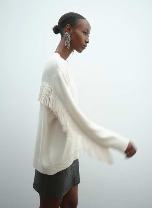 MAGLIA GIROCOLLO CON FRANGE