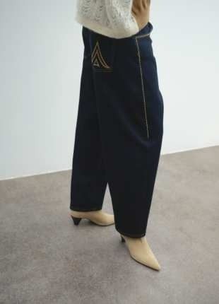 Jeans color indigo con piccole borchie lungo le tasche ed i lati.