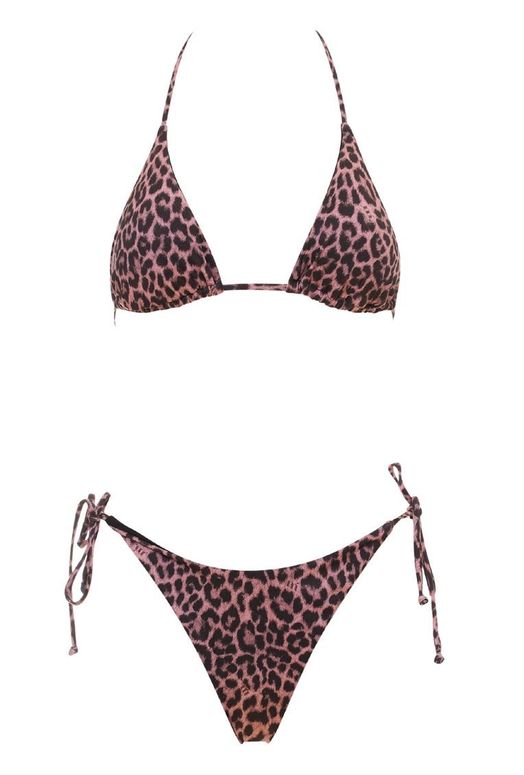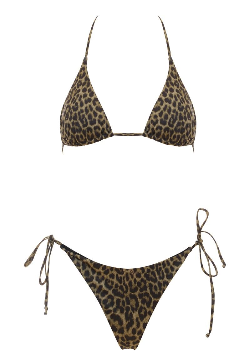 Triangolo con coppette estraibili e chiusura con laccetti, slip brasiliano con laccetti laterali.