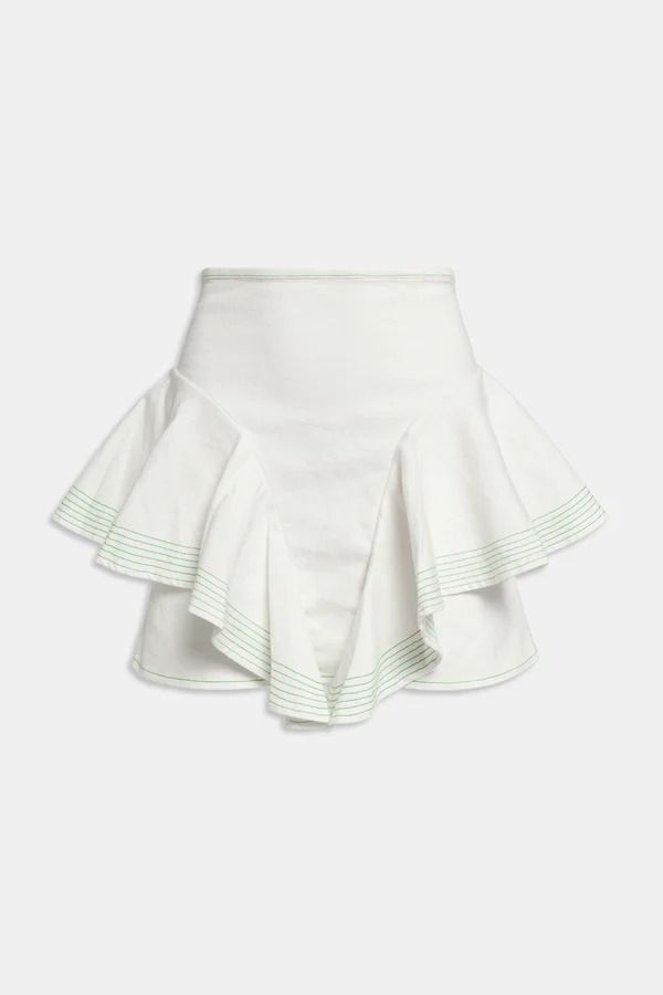 Minigonna in bull di cotone elasticizzato con balze laterali,
