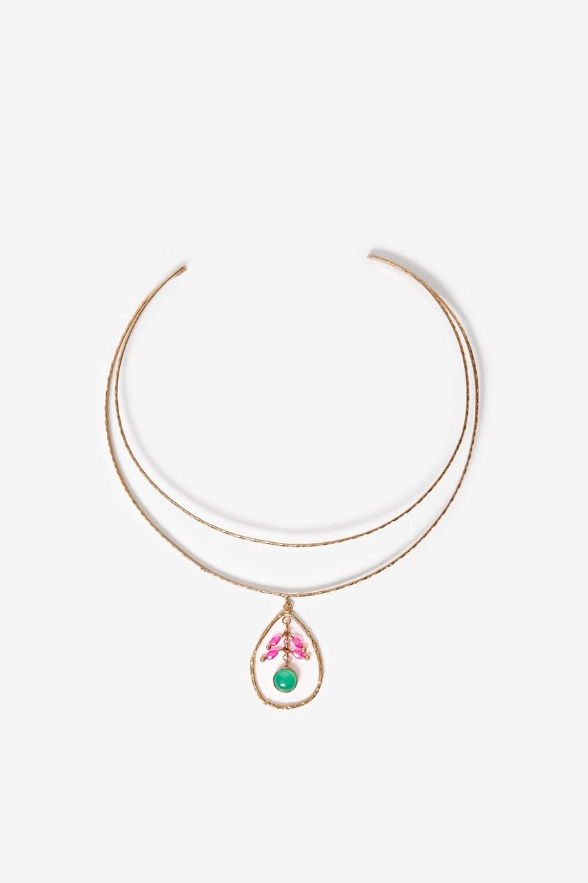 Collana rigida in metallo dorato con doppio cerchio.