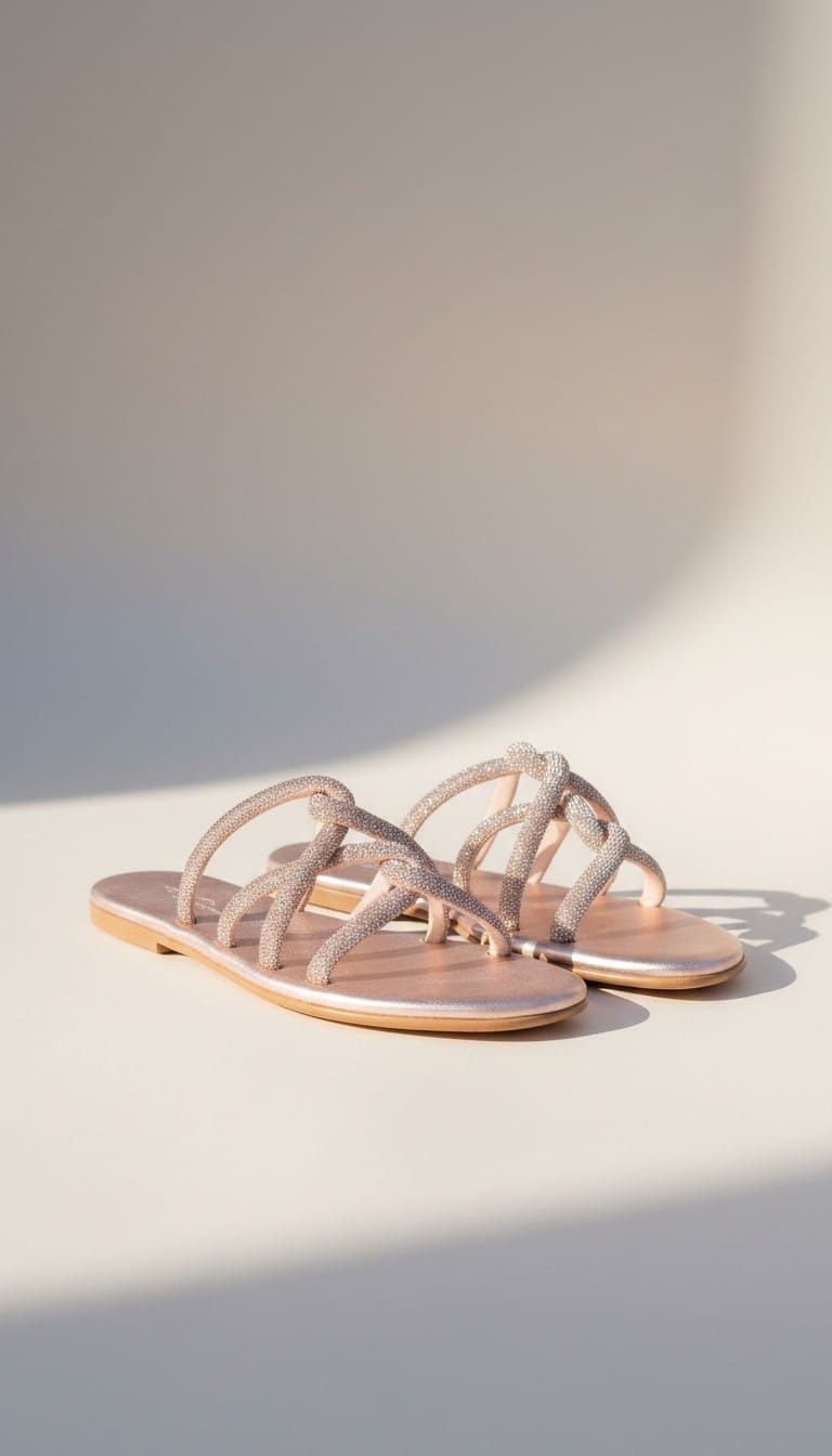 Ciabatta in cuoio con strass tono su tono, fondo laminato in tinta.
